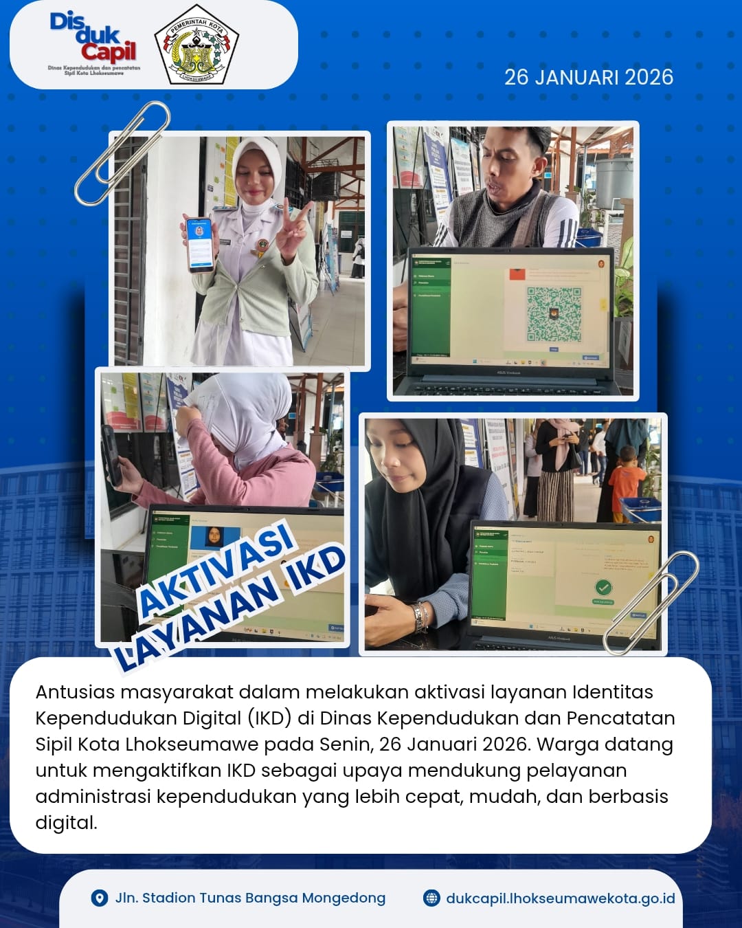 Dinas Kependudukan dan Pencatatan Sipil Kota Lhokseumawe melaksanakan layanan aktivasi Identitas Kependudukan Digital (IKD), dengan antusias tinggi dari masyarakat yang memanfaatkan layanan berbasis Dogital…
